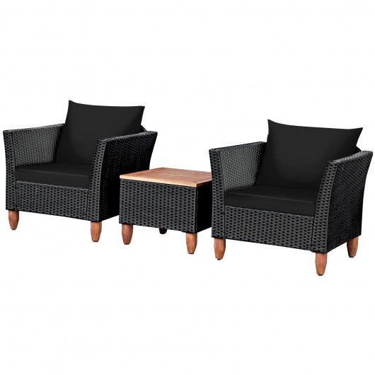 3 Pieces Outdoor Patio Rattan Furniture Set-Black