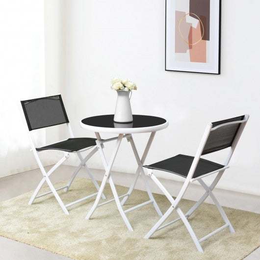 3 Pieces Patio Folding Bistro Set for Balcony or Outdoor Space-Black