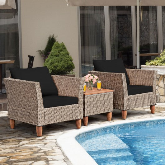 3 Pieces Patio Rattan Bistro Furniture Set-Black