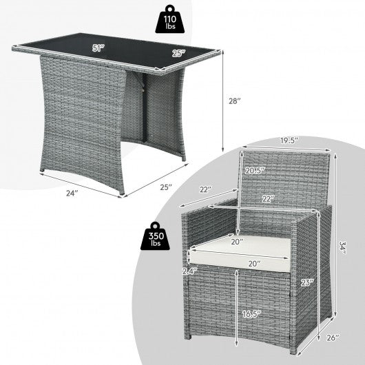 3 Pieces Patio Rattan Furniture Set with Cushioned Armrest Sofa-White