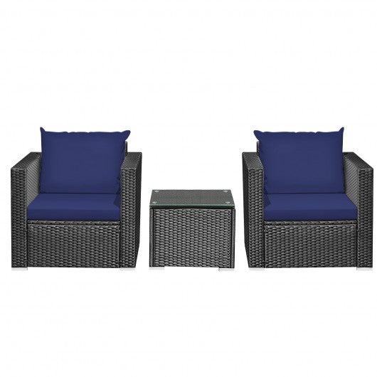 3 Pieces Patio Wicker Furniture Set with Cushion-Navy