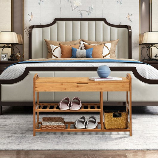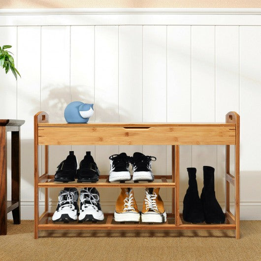 3-Tier Bamboo Shoe Bench Entryway Storage Rack-Beige