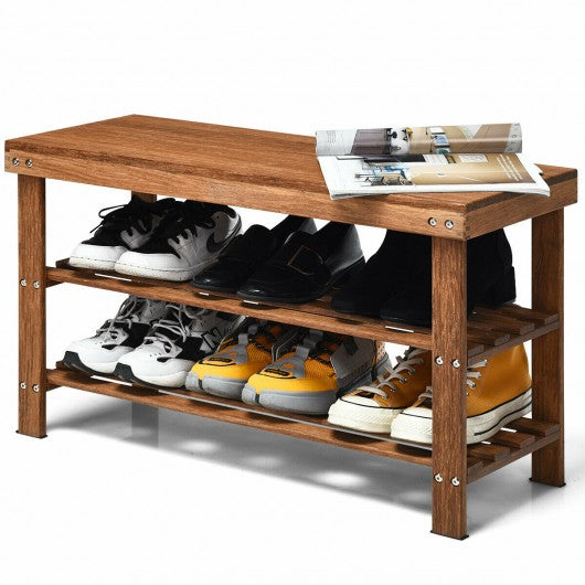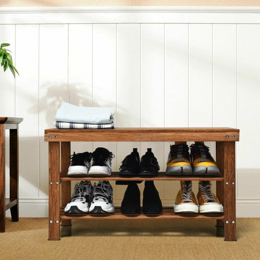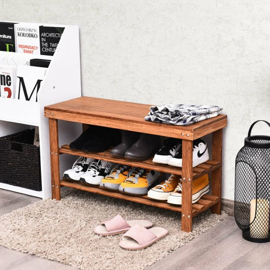 3-Tier Bamboo Shoe Bench Storage Rack Organizer