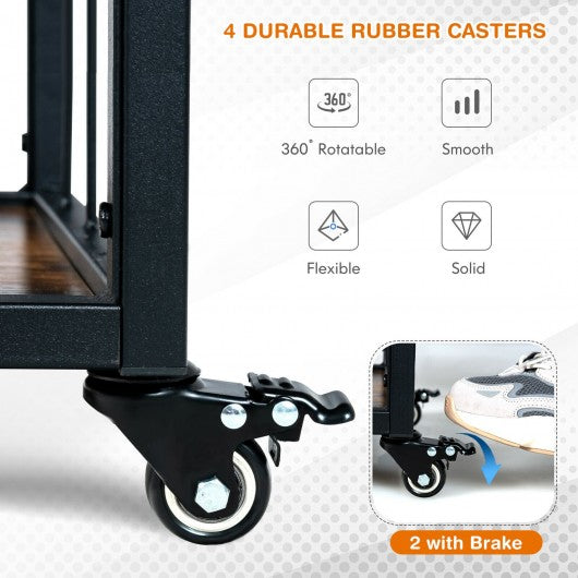 3-Tier Rolling Kitchen Bar Cart with Wine Rack-Rustic Brown