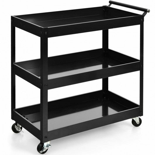 3-Tier Utility Cart Metal Mental Storage Service Trolley-Black