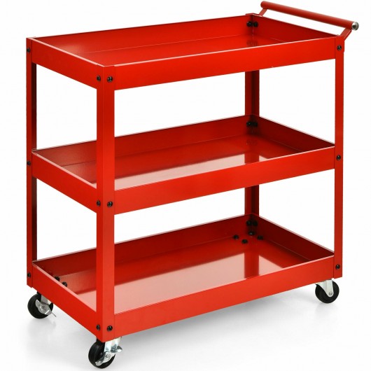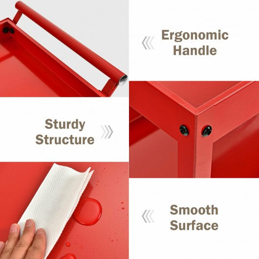 3-Tier Utility Cart Metal Mental Storage Service Trolley-Red