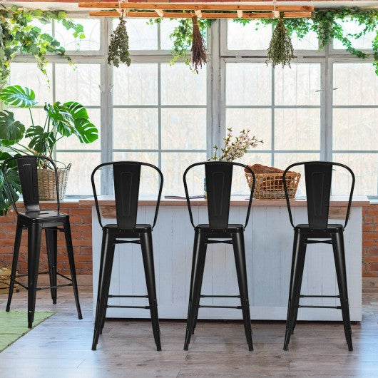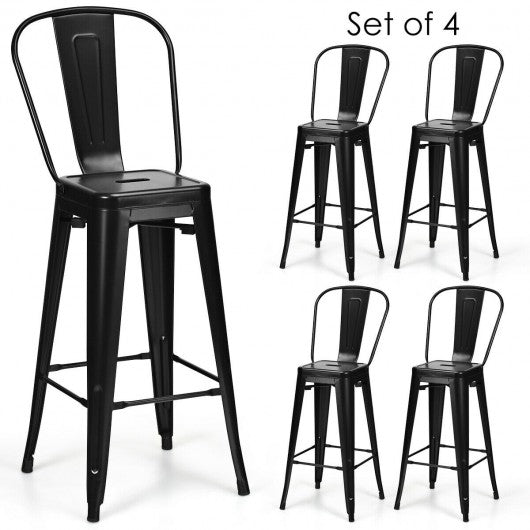 30" Height Set of 4 High Back Metal Industrial Bar Stools-Black
