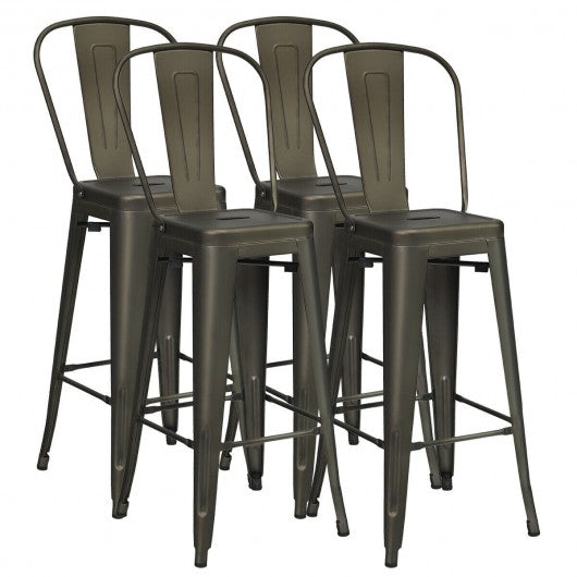 30" Height Set of 4 High Back Metal Industrial Bar Stools-Gun