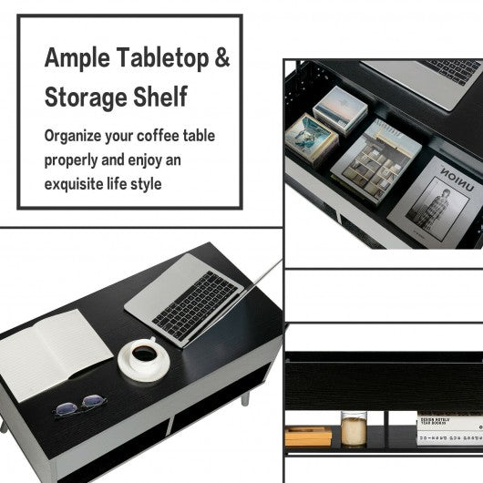31.5" Lift Top Coffee Table with Hidden Compartment and 2 Storage Shelves-Black