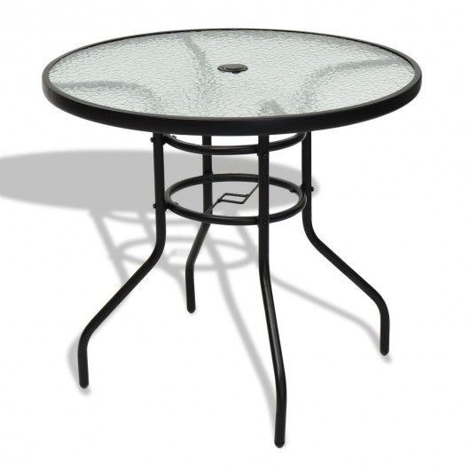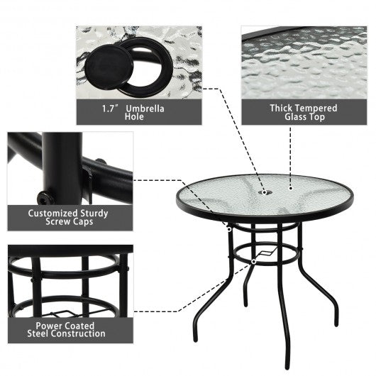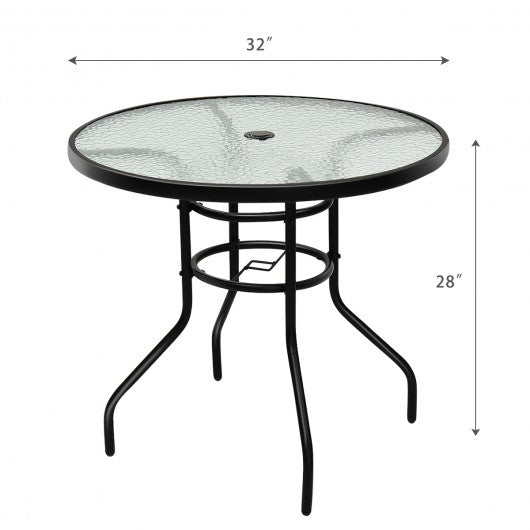 32" Patio Tempered Glass Steel Frame Round Table with Convenient Umbrella Hole