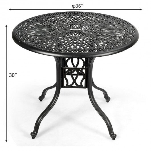 36" Cast Aluminum Round Patio Dining Table with Umbrella Hole