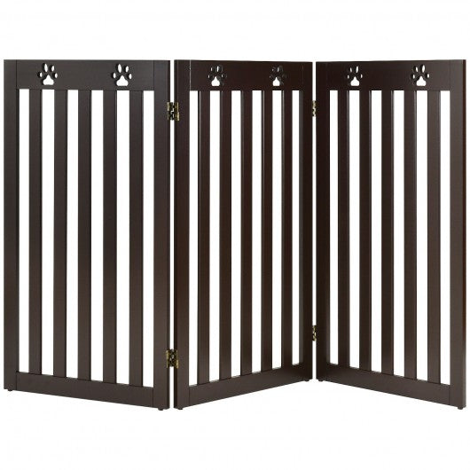 36" Folding Wooden Freestanding Pet Gate Dog Gate with 360° Flexible Hinge-Espresso