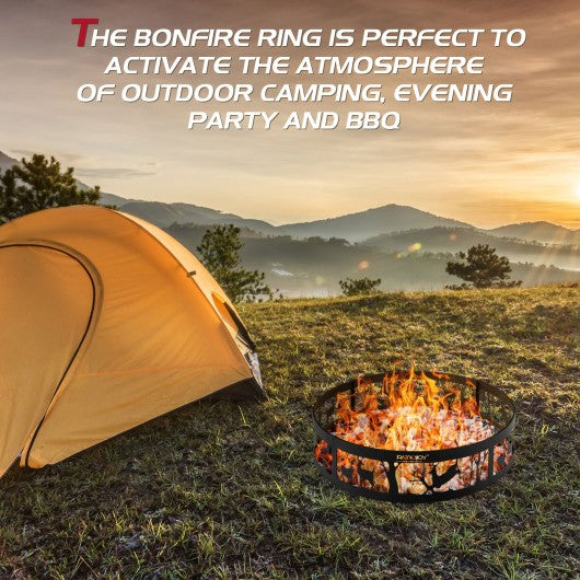 36 Inch Metal Fire Pit Ring Deer with Extra Poker Bonfire Liner for Campfire