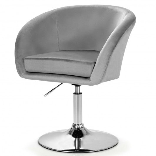 360 Degree Swivel Makeup Stool Accent Chair with Round Back and Metal Base -Gray