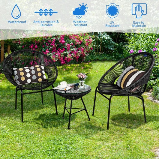 3PCS Patio Acapulco Furniture Bistro Set with GlassTable-Black