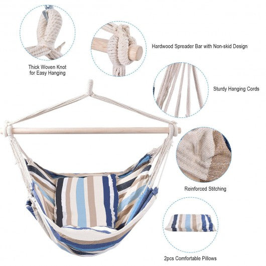 4 Color Deluxe Hammock Rope Chair Porch Yard Tree Hanging Air Swing Outdoor-Light Blue