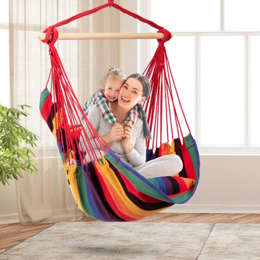 4 Color Deluxe Hammock Rope Chair Porch Yard Tree Hanging Air Swing Outdoor-Red