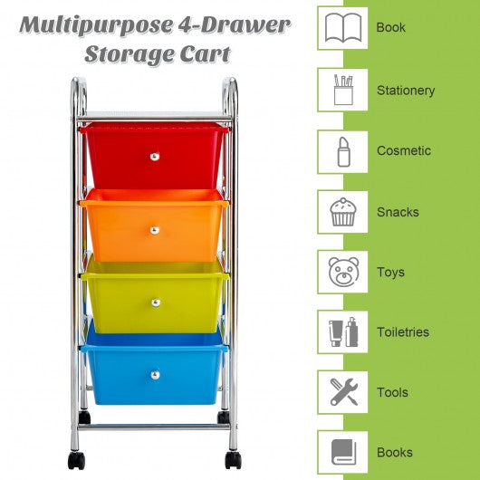 4-Drawer Cart Storage Bin Organizer Rolling with Plastic Drawers-Multicolor
