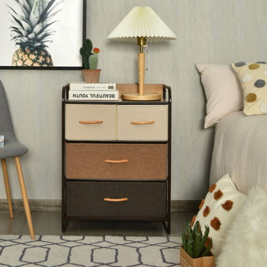 4-Drawer Tower Steel Frame Wooden Top Dresser Storage with 3-Tier Organizer