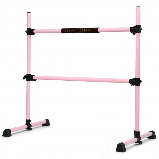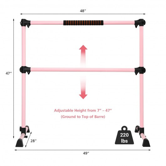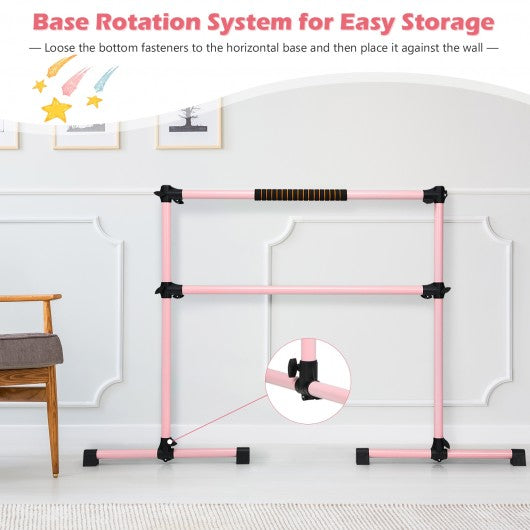 4 Ft Portable Freestanding Stable Construction Pilates Ballet Barre with Double Dance Bar-Pink