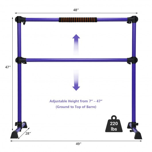 4 Ft Portable Freestanding Stable Construction Pilates Ballet Barre with Double Dance Bar-Purple