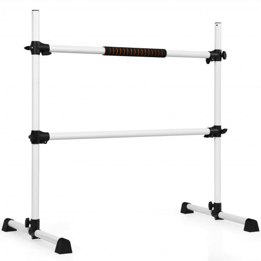 4 Ft Portable Freestanding Stable Construction Pilates Ballet Barre with Double Dance Bar-Silver Gray