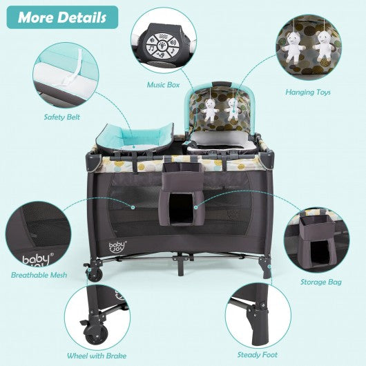 4-in-1 Convertible Portable Baby Playard Newborn Napper with Music and Toys-Blue