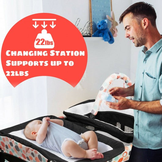 4-in-1 Convertible Portable Baby Playard with Changing Station-Pink