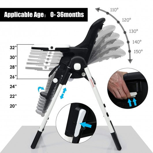 4 in 1 High Chair–Booster Seat with Adjustable Height and Recline-Black