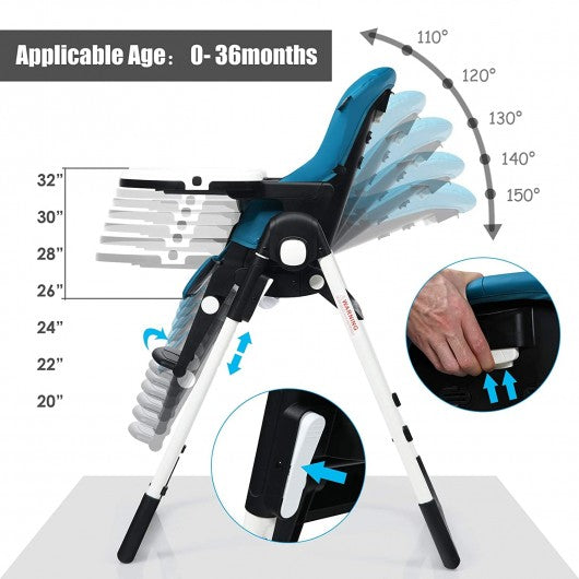 4 in 1 High Chair–Booster Seat with Adjustable Height and Recline-Navy