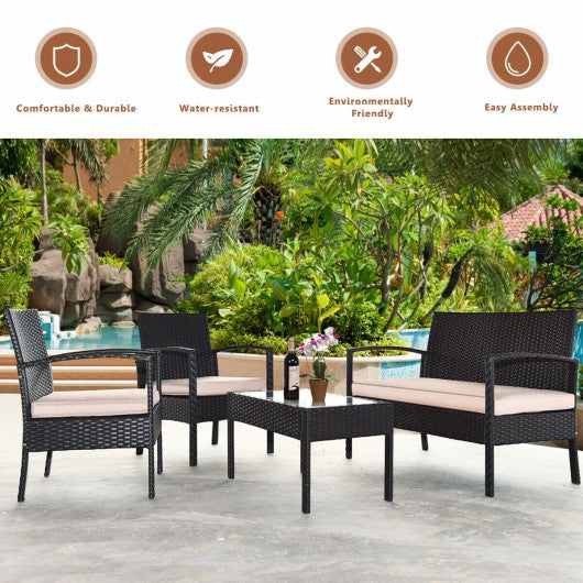 4 Pcs Patio Furniture Sets Rattan Chair Wicker Set Outdoor Bistro