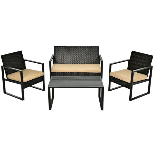 4 Pcs Patio Rattan Furniture Set Cushioned Sofa Coffee Table Garden Deck