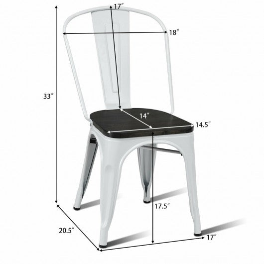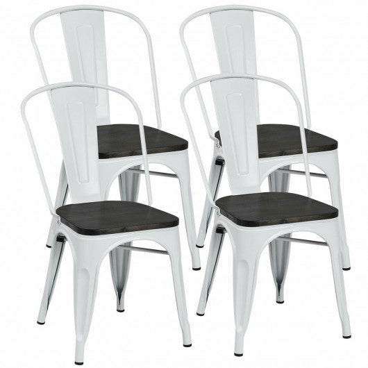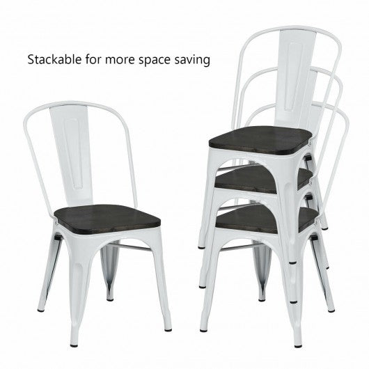4 pcs Tolix Style Metal Dining Side Chair Stackable Wood Seat-White