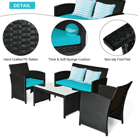 4 Pcs Wicker Conversation Furniture Set Patio Sofa and Table Set-Turquoise