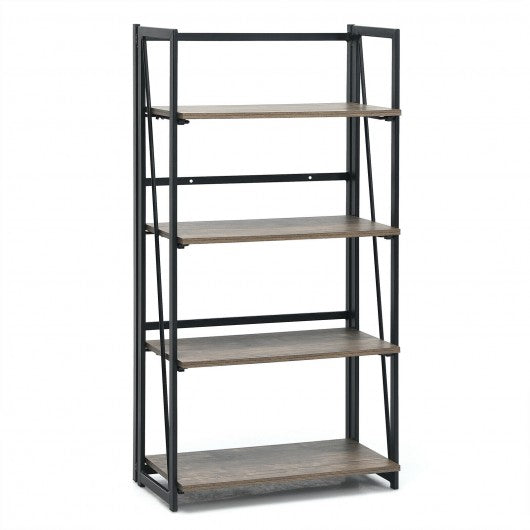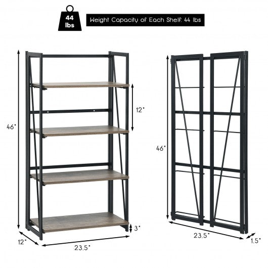 4-Tier Folding Bookshelf No-Assembly Industrial Bookcase Display Shelves