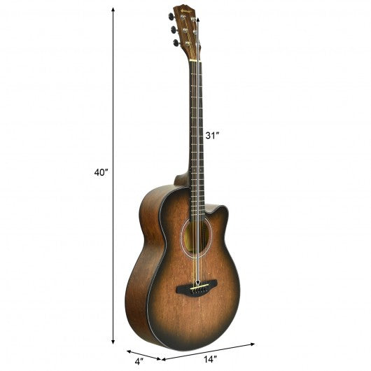 40" Full Size Cutaway Acoustic Guitar Starter Guitarra Bundle Kit -Coffee