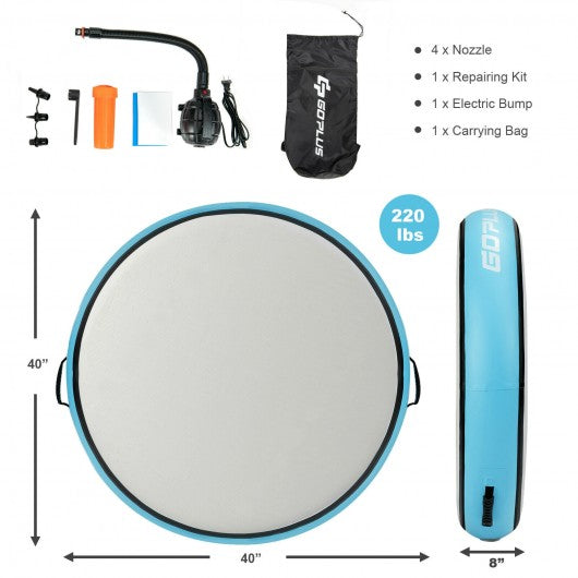 40" Inflatable Round Gymnastic Mat Tumbling Floor Mat with Electric Pump-Blue