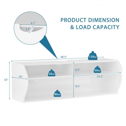48.5" 2 Tier Modern Wall Mounted Hanging Floating Shelf-White