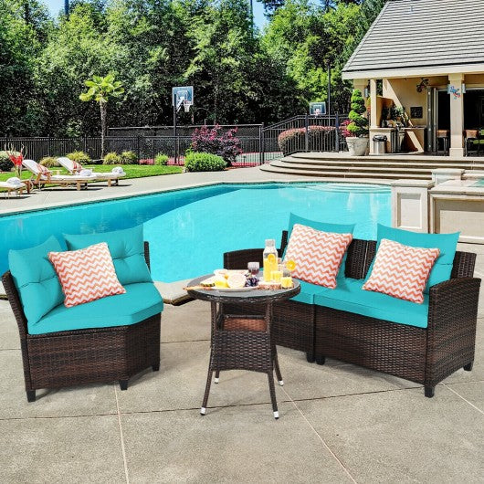4Pcs Outdoor Cushioned Rattan Furniture Set-Turquoise