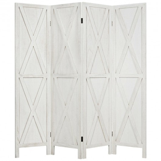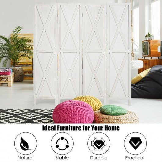 5.6 Ft 4 Panels Folding Wooden Room Divider-White