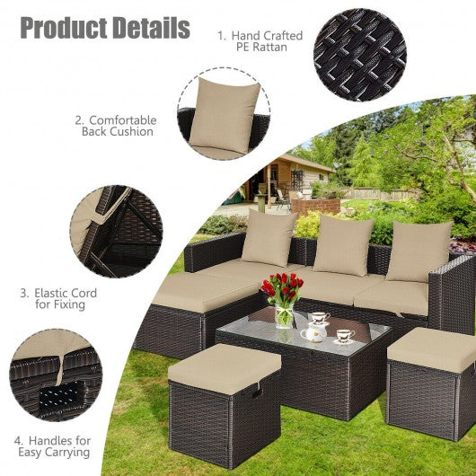 5-Piece Rattan Patio Furniture Set Adjustable Sofa Cushioned Ottoman