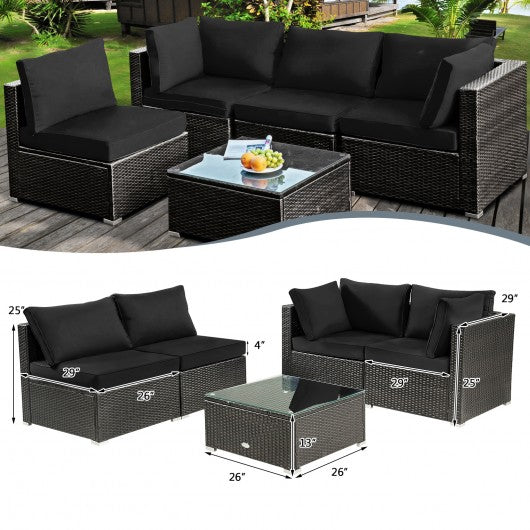 5 Pieces Cushioned Patio Rattan Furniture Set with Glass Table-Black