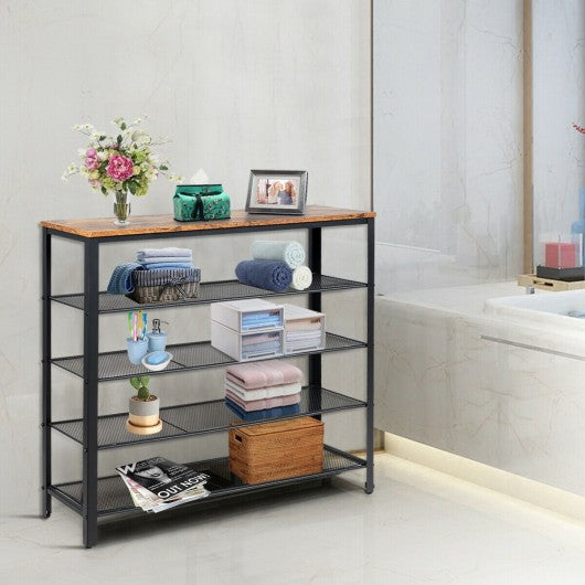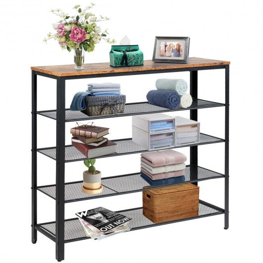 5-Tier Shoe Storage Organizer with 4 Metal Mesh Shelves