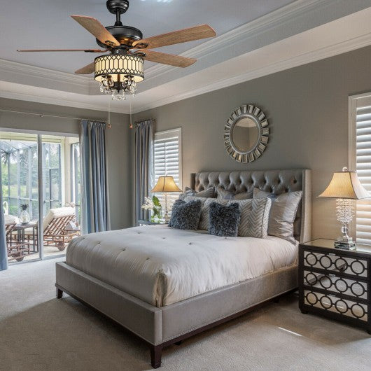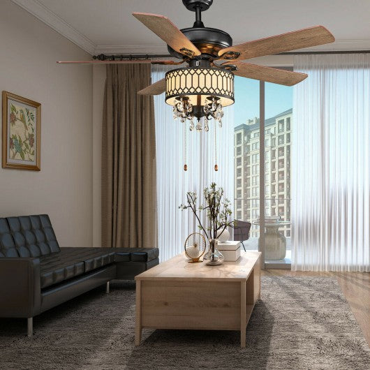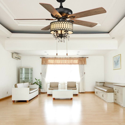 52" Crystal Ceiling Fan Lamp w- 5 Reversible Blades-Black