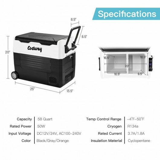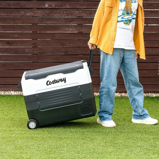 58 Quarts Car Refrigerator Portable RV Freezer Dual Zone with Wheel-Black