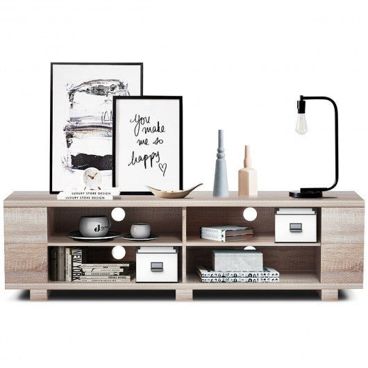 59" Console Storage Entertainment Media Wood TV Stand-Natural