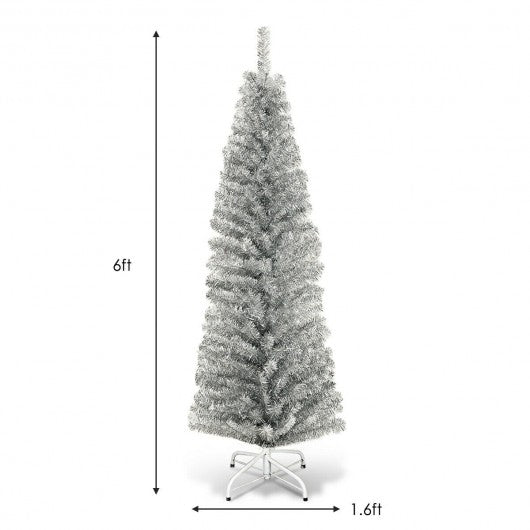 6 Feet Tinsel Tree Unlit Slim Pencil Christmas Tree-Silver