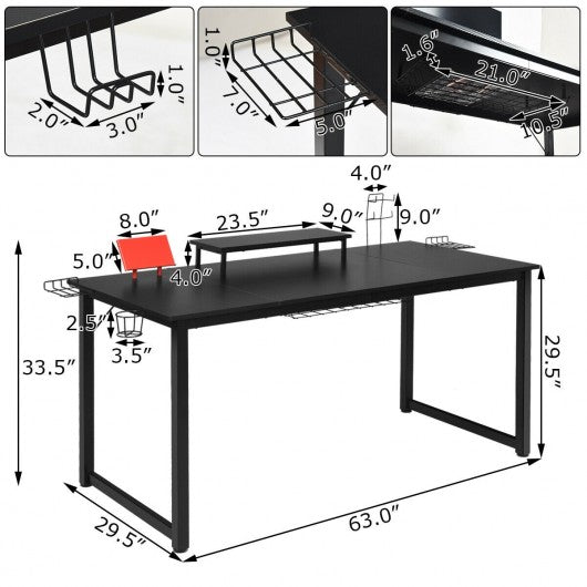 63 inch Gaming Desk with Monitor Shelf Tablet Board