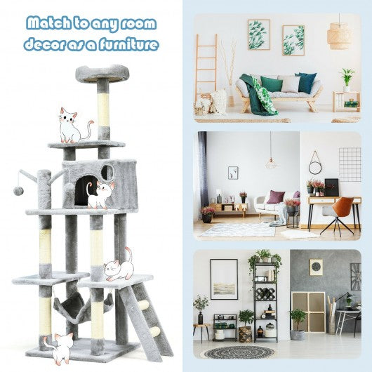 66" Cat Tree Condo Kitten Multi-Level Activity Center-Gray