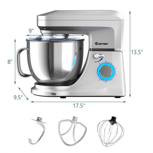 7.5 QT Tilt-Head Stand Mixer 6 Speed 660W with Dough Hook Beater -Silver